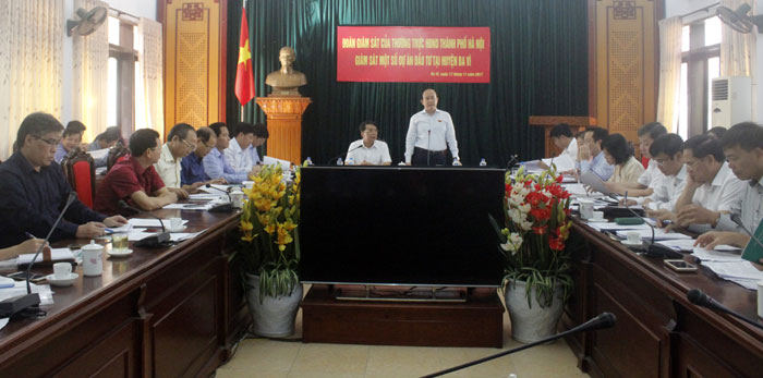 Căn cứ kiến nghị của cử tri huyện Ba Vì, ngày 17/11, đoàn giám sát của Thường trực HĐND TP Hà Nội do Phó Chủ tịch Thường trực HĐND TP Nguyễn Ngọc Tuấn làm Trưởng đoàn đã tiến hành khảo sát thực tế và có buổi làm việc với lãnh đạo huyện, các xã và sở, ngành, đơn vị liên quan về tiến độ, kết quả triển khai 3 dự án đầu tư đang chậm triển khai trên địa bàn.