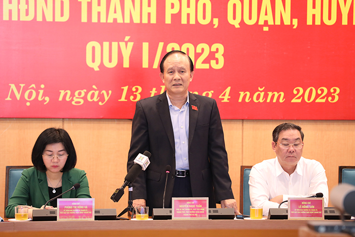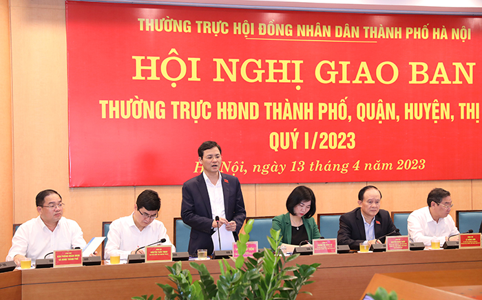 Sáng 13/4/2023, Thường trực HĐND thành phố Hà Nội tổ chức hội nghị giao ban với Thường trực HĐND các quận, huyện, thị xã quý I/2023. Hội nghị được tổ chức kết hợp trực tiếp và trực tuyến đến 143 điểm cầu quận, huyện, thị xã, xã, thị trấn với trên 1.200 đại biểu tham dự. Phó Bí thư Thành ủy, Chủ tịch HĐND Thành phố, Phó Trưởng đoàn ĐBQH Thành phố Nguyễn Ngọc Tuấn chủ trì hội nghị.
