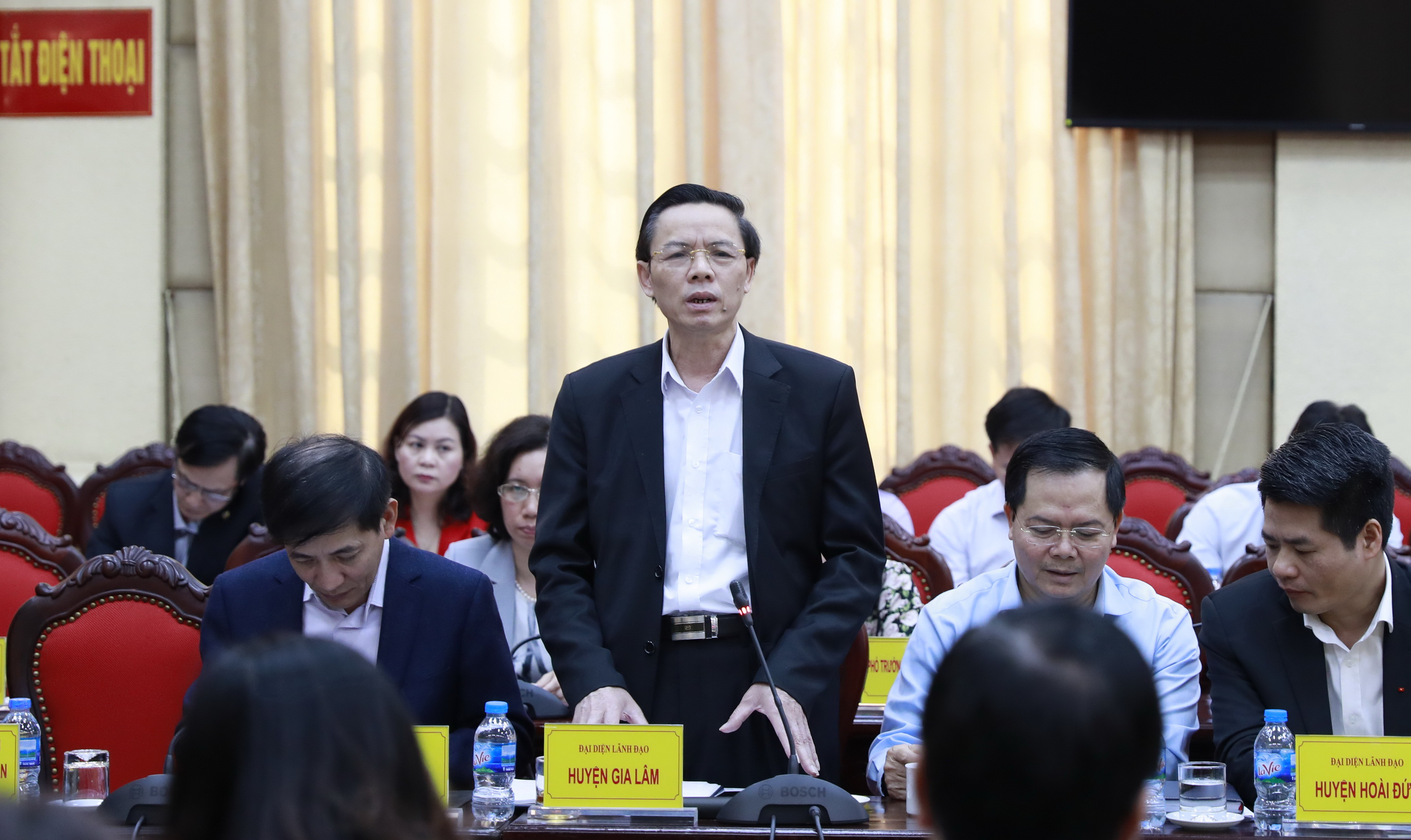 Bí thư Huyện ủy, Chủ tịch HĐND huyện Gia Lâm Nguyễn Huy Việt tham luận tại Hội nghị