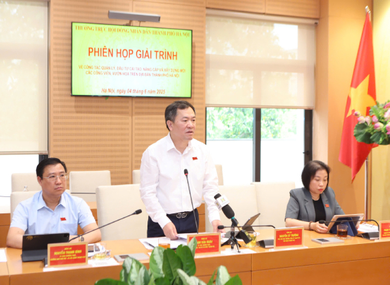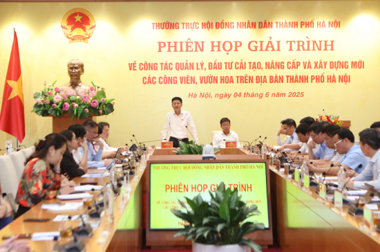 Ngày 4/6/2025, Thường trực HĐND thành phố Hà Nội tổ chức phiên họp giải trình về công tác quản lý, đầu tư cải tạo, nâng cấp và xây dựng mới các công viên, vườn hoa trên địa bàn thành phố Hà Nội.