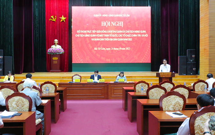 Chiều 24/10/2022, quận Bắc Từ Liêm tổ chức Hội nghị đối thoại giữa đồng chí Bí thư Quận ủy, Chủ tịch HĐND, Chủ tịch UBND quận với Mặt trận Tổ quốc, các tổ chức chính trị - xã hội và nhân dân trên địa bàn năm 2022.