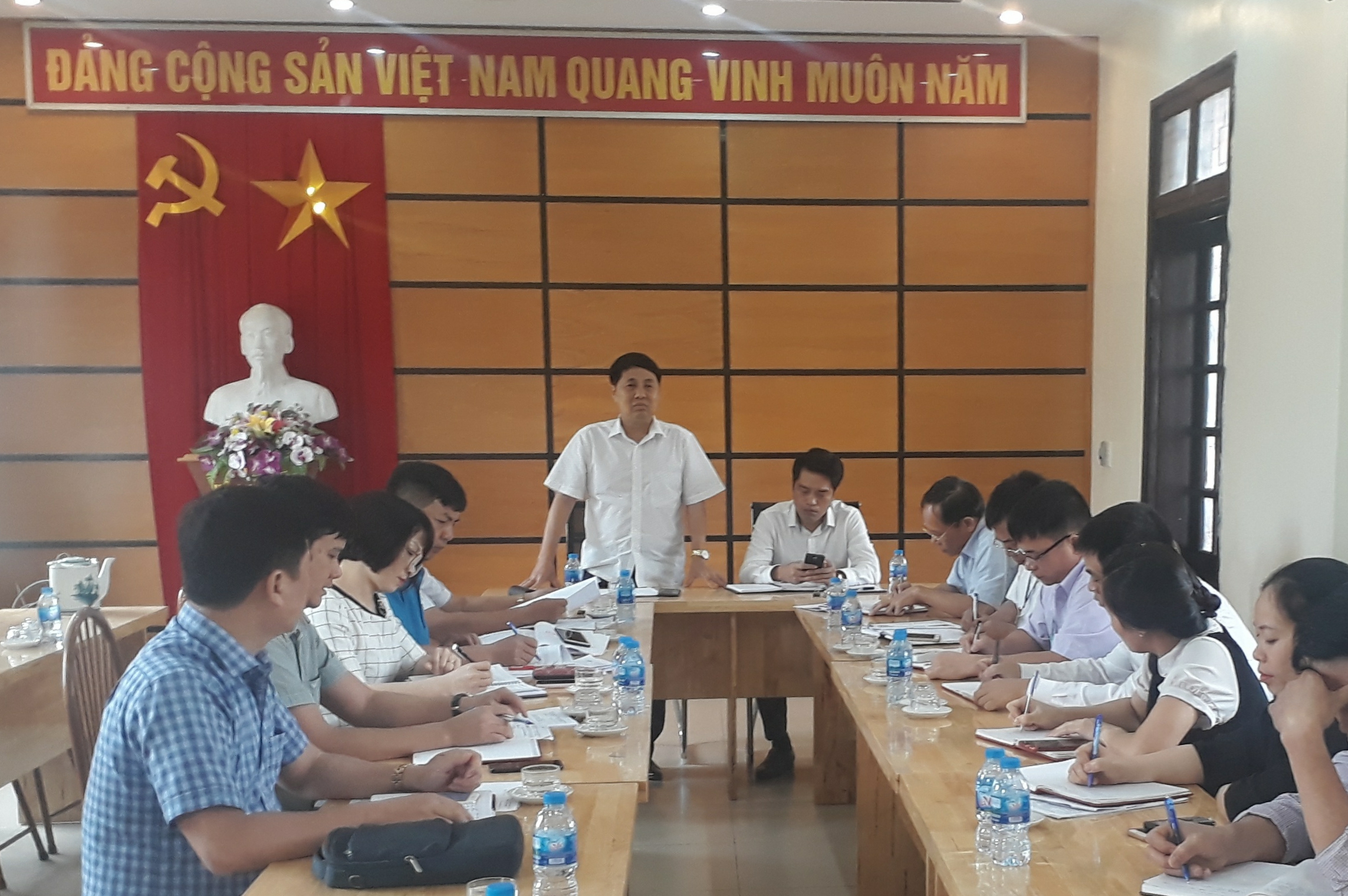 Đ/c Nguyễn Thế Hưởng - Phó chủ tịch HĐND xã báo cáo tại buổi làm việc
