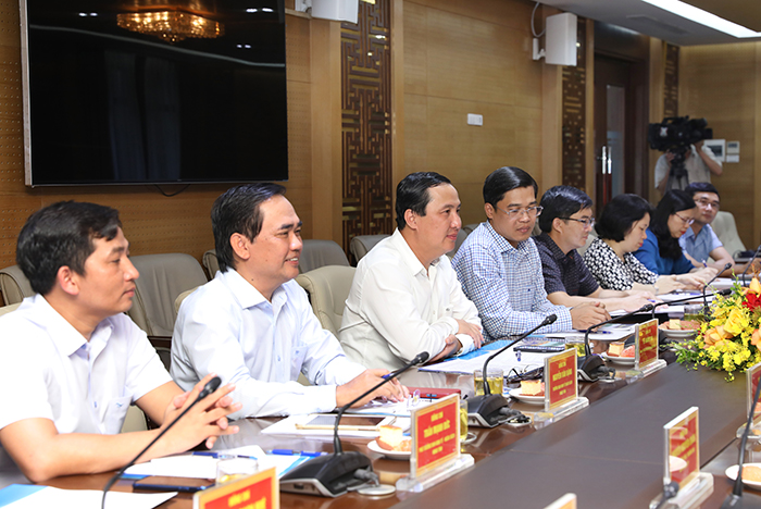 Các đồng chí Thường trực HĐND thành phố Hà Nội trao đổi, chia sẻ kinh nghiệm tại buổi làm việc