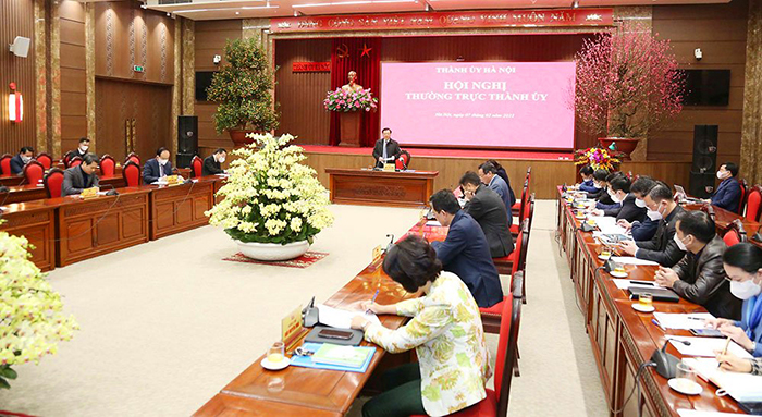 Sáng 07/02/2022, Thường trực Thành ủy Hà Nội đã họp, nghe báo cáo về tình hình chung và công tác phòng, chống dịch Covid-19 trong dịp Tết Nguyên đán Nhâm Dần 2022.