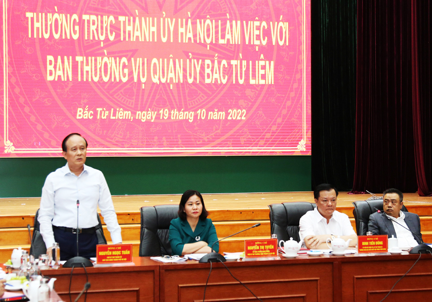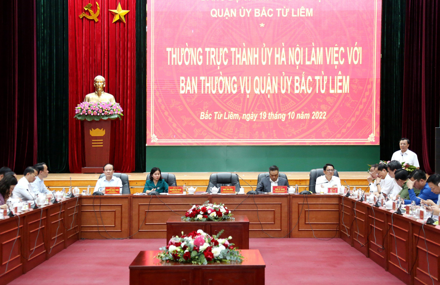 Sáng 19/10/2022, Thường trực Thành ủy Hà Nội làm việc với Ban Thường vụ Quận ủy Bắc Từ Liêm về tình hình, kết quả thực hiện Nghị quyết Đại hội lần thứ II Đảng bộ quận nhiệm kỳ 2020-2025, tính đến tháng 9/2022; phương hướng, nhiệm vụ trọng tâm trong thời gian tới.