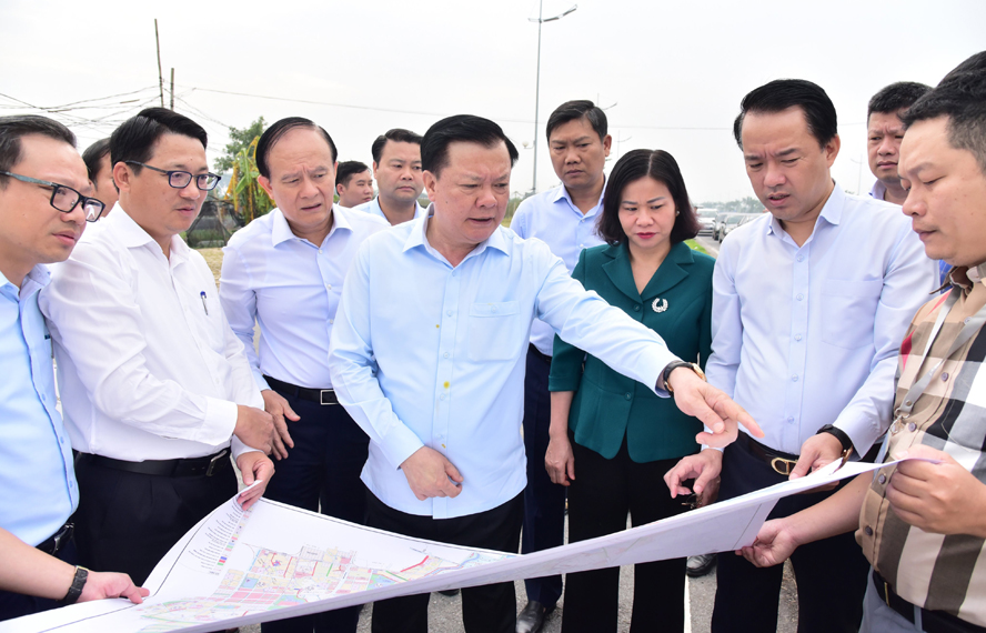 Các đồng chí lãnh đạo thành phố Hà Nội kiểm tra một số dự án đang được triển khai trên địa bàn quận Bắc Từ Liêm