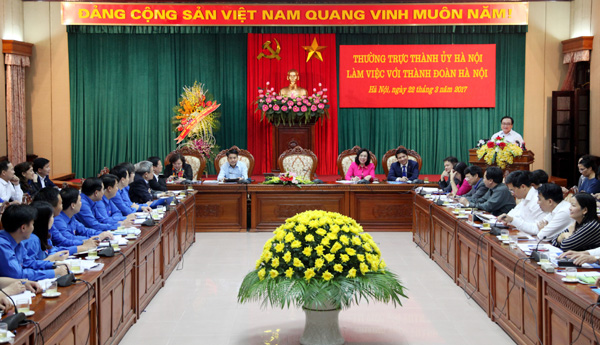Chiều 22-3, Thường trực Thành uỷ Hà Nội đã làm việc với Thành đoàn Hà Nội về tình hình, kết quả công tác đoàn và phong trào thanh thiếu nhi Thủ đô thời gian qua, nhiệm vụ trọng tâm năm 2017.