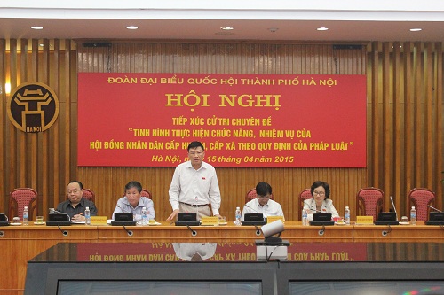Sáng ngày 15/4/2015, Đoàn đại biểu Quốc hội thành phố Hà Nội đã tổ chức Hội nghị tiếp xúc cử tri chuyên đề "Tình hình thực hiện chức năng, nhiệm vụ của HĐND cấp huyện, cấp xã theo quy định của pháp luật". Ý kiến cử tri đề nghị cần tăng số lượng đại biểu hoạt động chuyên trách ở các Ban của HĐND cấp huyện, HĐND cấp xã; quy định rõ tổ chức và nhiệm vụ, quyền hạn của HĐND để nâng cao chất lượng, hiệu quả hoạt động; quy định văn phòng riêng giúp việc HĐND cấp quận, huyện và chuyên viên giúp việc riêng cho HĐND cấp xã.