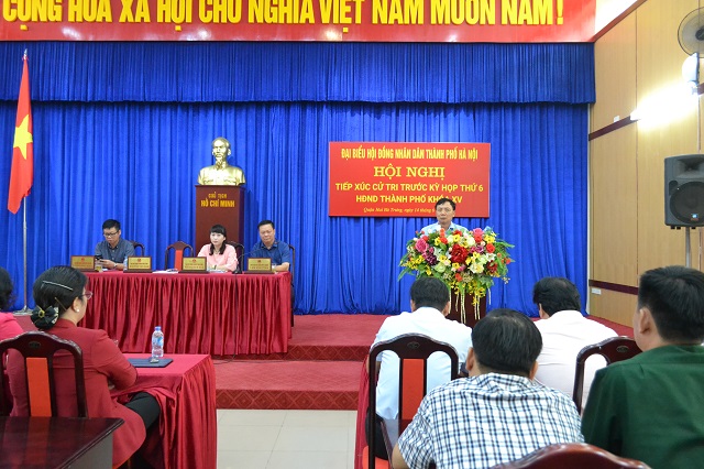 Tại quận Hai Bà Trưng, đại biểu Nguyễn Văn Nam, Thành ủy viên, Bí thư Quận ủy Hai Bà Trưng đã thông báo với cử tri về nội dung, thời gian dự kiến tổ chức kỳ họp thứ 6 HĐND Thành phố. Đại biểu Đào Quang Minh, Giám đốc Bệnh viện Thanh Nhàn thông báo với cử tri tóm tắt báo cáo của UBND Thành phố về tình hình kinh tế - xã hội 6 tháng đầu năm, nhiệm vụ trọng tâm 6 tháng cuối năm 2018. Đại biểu Phùng Thị Bích Nga, Chánh văn phòng Quận ủy Hai Bà Trưng thông báo về những nội dung UBND Thành phố trả lời ý kiến, kiến nghị của cử tri tại các cuộc tiếp xúc trước.