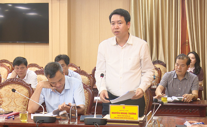 Chủ tịch UBND huyện Nguyễn Hoàng Trường báo cáo tại buổi làm việc