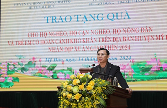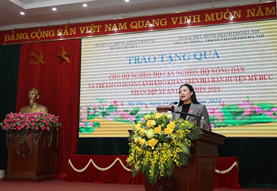 Nhân dịp chuẩn bị đón xuân Giáp Thìn 2024, sáng 14/01/2024, Tổ đại biểu HĐND thành phố Hà Nội ứng cử tại đơn vị bầu cử số 16 đã phối hợp với Sở Lao động Thương binh và Xã hội Hà Nội tổ chức trao quà tặng hộ nghèo, hộ cận nghèo, hộ nông dân và trẻ em có hoàn cảnh khó khăn trên địa bàn huyện Mỹ Đức.