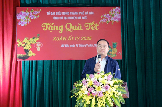 Thay mặt Tổ đại biểu phát biểu tại chương trình, Chánh Văn phòng Đoàn ĐBQH và HĐND Thành phố Nguyễn Ngọc Việt bày tỏ niềm vui mừng khi thấy diện mạo đô thị, nông thôn trên địa bàn huyện ngày càng khang trang, sạch đẹp, đời sống vật chất, tinh thần của người dân ngày càng được nâng cao. Tuy nhiên, đồng chí Nguyễn Ngọc Việt cũng cho rằng vẫn còn những hộ gia đình khó khăn, đặc biệt trong đó có cựu thanh niên xung phong đã cống hiến cho đất nước những năm tháng tuổi trẻ nay về địa phương sinh sống. Vì vậy, với tấm lòng sẻ chia, đại biểu HĐND thành phố ứng cử tại huyện có những phần quà nhỏ mong muốn góp phần cùng các cựu thanh niên xung phong đón Tết đầm ấm, hạnh phúc.