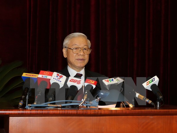 Tổng bí thư Nguyễn Phú Trọng phát biểu bế mạc (Ảnh TTXVN)