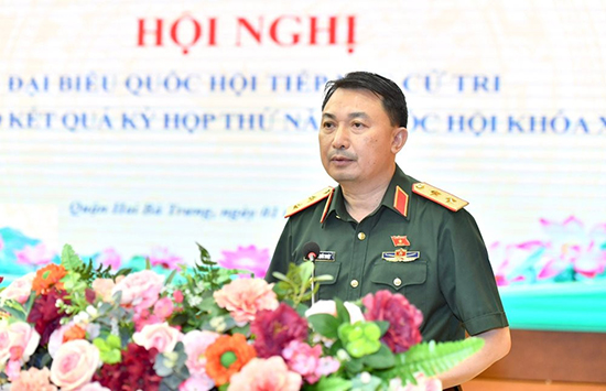 Đại biểu Quốc hội thành phố Hà Nội, Trung tướng Nguyễn Quốc Duyệt thông báo kết quả kỳ họp thứ năm, Quốc hội khoá XV tới cử tri dự hội nghị.