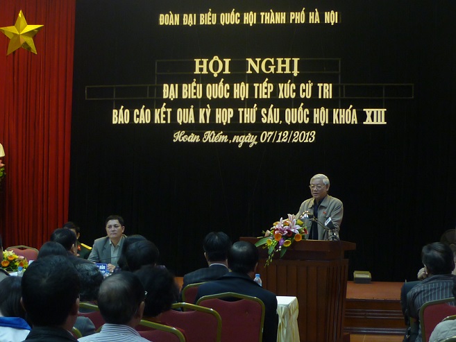 Chiều 6/12 và cả ngày 7/12, Tổng Bí thư Nguyễn Phú Trọng và các đại biểu Quốc hội Nguyễn Minh Quang, Tổng giám đốc Công ty đầu tư xây dựng hạ tầng Hà Nội (Udic); Lê Hiền Vân, Phó Chính ủy Bộ Tư lệnh Thủ đô, đã tiếp xúc cử tri tại các quận Tây Hồ, Ba Ðình và Hoàn Kiếm, báo cáo kết quả Kỳ họp thứ 6, Quốc hội khóa XIII.