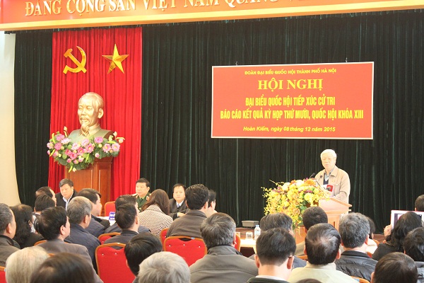 Thực hiện kế hoạch TXCT định kỳ báo cáo kết quả kỳ họp thứ 10, Quốc hội khóa XIII. Ngày 8/12/2015, các vị ĐBQH đơn vị bầu cử số 1 đã tiến hành tiếp xúc với các cử tri tại quận Ba Đình, Hoàn Kiếm, Tây Hồ. Tại hội nghị, ĐBQH đã báo cáo với cử tri về kết quả kỳ họp thứ 10, Quốc hội khóa XIII, kết quả giải quyết và trả lời những ý kiến, kiến nghị của cử tri của các cơ quan Trung ương, các cơ quan Thành phố tại kỳ TXCT lần trước; Báo cáo với cử tri tình hình hoạt động của các vị ĐBQH trong tổ ĐB đơn vị bầu cử số 1.