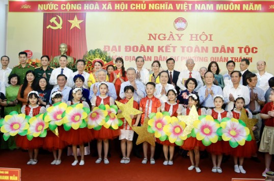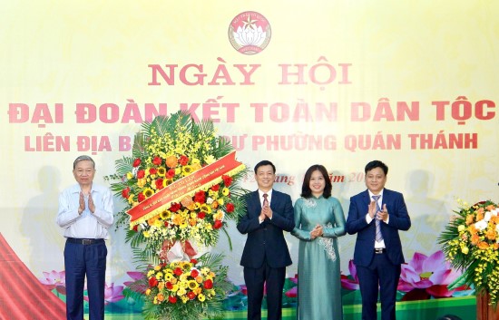 Phát biểu tại Ngày hội Đại đoàn kết toàn dân tộc của liên địa bàn dân cư phường Quán Thánh, Tổng Bí thư Tô Lâm cho biết, sau gần 80 năm lập nước và gần 40 năm đổi mới, dưới sự lãnh đạo đúng đắn, sáng suốt của Đảng, sự vào cuộc quyết liệt của cả hệ thống chính trị; sự chung sức, đồng lòng của các tầng lớp nhân dân; phát huy sức mạnh dân tộc với sức mạnh thời đại, sự nghiệp cách mạng Việt Nam đã đạt được thành tựu vĩ đại, những kỳ tích phát triển vô cùng đáng tự hào. Từ một nước nghèo nàn, lạc hậu, không có tên trên thế giới, Việt Nam đã thực hiện được một phần quan trọng lời căn dặn của Chủ tịch Hồ Chí Minh, trở thành nước đang phát triển, có thu nhập trung bình, hội nhập sâu rộng.
