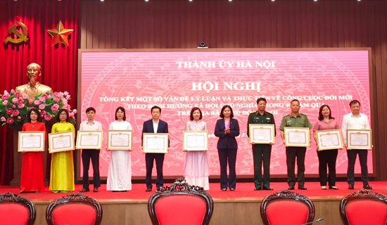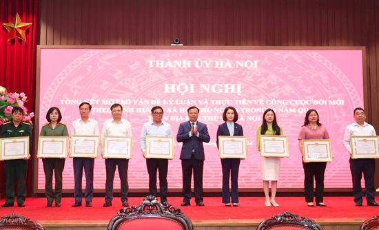 Dịp này, Ban Thường vụ Thành ủy Hà Nội đã tặng Bằng khen cho 10 tập thể, 10 cá nhân có thành tích xuất sắc trong thực hiện nhiệm vụ tổng kết 40 năm đổi mới trên địa bàn Hà Nội.