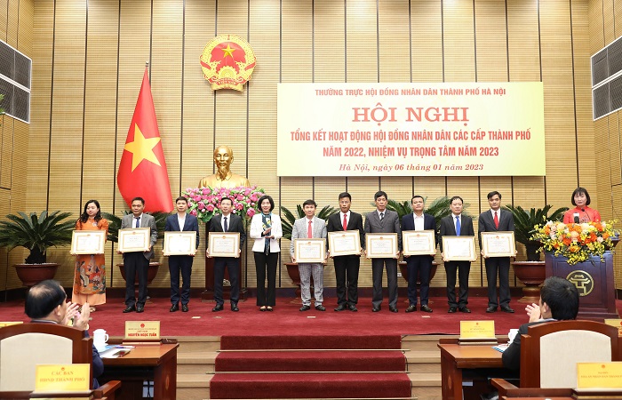 Tại hội nghị, 40 tập thể, 21 cá nhân được tặng Bằng khen của Chủ tịch UBND thành phố Hà Nội vì có thành tích xuất sắc trong hoạt động của HĐND các cấp Thành phố năm 2022.