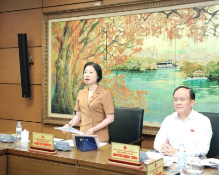 Phó Trưởng đoàn chuyên trách Đoàn đại biểu Quốc hội thành phố Hà Nội Phạm Thị Thanh Mai điều hành phiên thảo luận