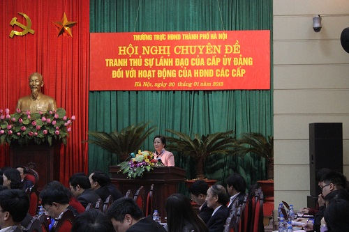 Ngày 20-1, Thường trực HĐND thành phố Hà Nội đã tổ chức hội nghị với lãnh đạo các Ban HĐND, Tổ trưởng Tổ đại biểu HĐND TP; Thường trực cấp ủy, HĐND các quận, huyện, thị xã... để triển khai nhiệm vụ trọng tâm công tác năm 2015 và trao đổi chuyên đề "Tranh thủ sự lãnh đạo của cấp ủy Đảng đối với hoạt động của HĐND các cấp"; đồng chí Ngô Thị Doãn Thanh, Ủy viên Trung ương Đảng, Phó Bí thư Thành ủy, Chủ tịch HĐND thành phố Hà Nội chủ trì hội nghị.