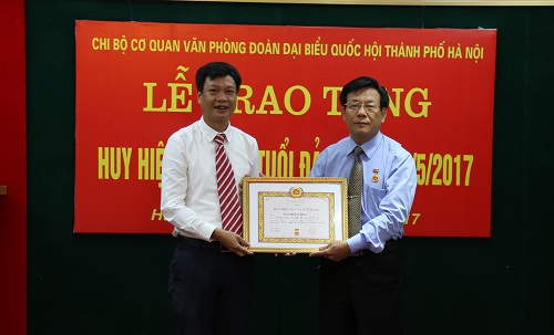 Nhân kỷ niệm 127 năm ngày sinh Chủ tịch Hồ Chí Minh (19/5/1890-19/5/2017), sáng ngày 18/5/2017, Chi bộ cơ quan Văn phòng Đoàn ĐBQH thành phố Hà Nội đã tổ chức trao huy hiệu 30 năm tuổi Đảng cho đồng chí Nguyễn Văn Hòa - Phó Chánh Văn phòng.