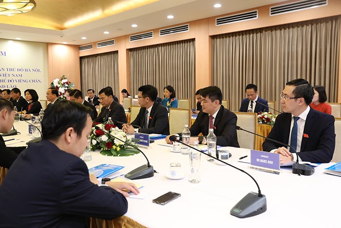 Tại buổi hội đàm, Chủ tịch HĐND thành phố Hà Nội Nguyễn Ngọc Tuấn và Chủ tịch HĐND Thủ đô Viêng Chăn Anouphap Tounalom đã giới thiệu chức năng, nhiệm vụ, hoạt động của HĐND hai Thủ đô và định hướng hợp tác thời gian tới.