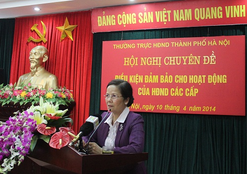 Sáng 10/4, Thường trực Hội đồng Nhân dân thành phố Hà Nội tổ chức hội nghị trực tuyến với Thường trực HĐND các quận, huyện, thị xã về đánh giá về tình hình thực hiện nhiệm vụ quý I và triển khai nhiệm vụ trọng tâm quý II/2014; trao đổi chuyên đề điều kiện đảm bảo hoạt động của HĐND các cấp. Đồng chí Ngô Thị Doãn Thanh, Ủy viên BCH Trung ương Đảng, Phó Bí thư Thành ủy, Chủ tịch HĐND TP chủ trì hội nghị.Đại biểu tham dự tại điểm cầu Thường trực HĐND TP Hà Nội Trong quý I/2014, Thường trực HĐND Thành phố đã phối hợp với Đoàn ĐBQH, UBND, Ủy ban MTTQ TP tổ chức ký kết và triển khai chương trình phối hợp công tác năm 2014; chỉ đạo việc thành lập tổ chức bộ máy chính quyền lâm thời và chuẩn bị cho việc bầu cử HĐND 2 quận Bắc Từ Liêm và Nam Từ Liêm theo thẩm quyền và quy định của pháp luật. Thường trực HĐND TP đã giám sát về “tình hình, kết quả giải quyết kiến nghị cử tri và kết quả giải quyết khiếu nại tố cáo của công dân trên địa bàn Thành phố”, các Ban HĐND TP đã chủ động tổ chức nhiều cuộc khảo sát, giám sát chuyên sâu theo đúng kế hoạch. Về công tác tiếp công dân, xử lý đơn thư khiếu nại, tố cáo của công dân, đại biểu HĐND đã chấp hành nghiêm túc quy chế hoạt động, đã có 132 lượt đại biểu được phân công tiếp dân theo lịch. Các buổi tiếp công dân định kỳ hàng tháng của đại biểu HĐND TP tại các quận, huyện, thị xã đều có sự phối hợp chặt chẽ của Thường trực HĐND và UBND các địa phương. Các buổi tiếp công dân đều đảm bảo an toàn, trật tự, chấp hành đúng các quy định của pháp luật, đạt hiệu quả và thu hút được sự quan tâm của nhiều tầng lớp nhân dân. Tuy mới bước đầu triển khai việc Thường trực HĐND TP tiếp công dân theo vụ việc định kỳ hàng tháng cùng với việc tiếp công dân theo quy định của đại biểu HĐND nhưng đã cho thấy rõ hiệu quả của chủ trương này, được dư luận ghi nhận đồng thời củng cố niềm tin của cử tri và nhân dân Thủ đô đối với đại biểu dân cử. Trong quý II/2014, Thường trực HĐND TP tiếp tục phối hợp chặt chẽ với UBND, Ủy ban MTTQ TP trong chỉ đạo tổ chức thực hiện các nhiệm vụ, giải pháp trọng tâm nhằm phấn đấu hoàn thành mức cao nhất các mục tiêu, chỉ tiêu kinh tế xã hội, thu chi ngân sách năm 2014 theo tinh thần nghị quyết HĐND TP. Chỉ đạo làm tốt công tác bầu cử bổ sung đại biểu HĐND cấp quận và cấp phường tại 2 quận Bắc Từ Liêm và Nam Từ Liêm theo đúng quy định của pháp luật. Tổ chức tốt các cuộc giám sát, khảo sát theo kế hoạch, tiếp tục đổi mới công tác tiếp công dân. Đặc biệt, tiếp tục chỉ đạo triển khai thực hiện Đề án của Ban Thường vụ Thành ủy về “Nâng cao năng lực, hiệu lực, hiệu quả hoạt động của HĐND các cấp thành phố Hà Nội”. Trao đổi chuyên đề về điều kiện hoạt động của HĐND các cấp, phát biểu đề dẫn của Thường trực HĐND TP chỉ rõ, trước hết cần tăng cường sự lãnh đạo của Đảng. Để thực hiện điều này đòi hỏi HĐND các cấp phải hết sức chủ động trong việc nghiên cứu, quán triệt các chủ trương, nghị quyết, chương trình công tác của cấp ủy Đảng, cụ thể hóa thành nghị quyết, chương trình, kế hoạch của HĐND cấp mình; chủ động đề xuất và tham mưu cho cấp ủy trong công tác quy hoạch, kế hoạch đào tạo, bồi dưỡng, đề cử, bổ nhiệm, luân chuyển đội ngũ cán bộ là đại biểu HĐND; chủ động tranh thủ ý kiến lãnh đạo, chỉ đạo của Thường trực cấp ủy về nội dung kỳ họp HĐND, về những vấn đề quan trọng dự kiến thảo luận, quyết định. Vấn đề nâng cao năng lực của đại biểu HĐND được hội nghị quan tâm thảo luận: Trong quá trình lựa chọn, giới thiệu người ứng cử đại biểu HĐND, cùng với việc đảm bảo cơ cấu cần xác định rõ yêu cầu về tiêu chuẩn người ứng cử, đặc biệt quan tâm những người dự kiến bố trí làm đại biểu chuyên trách nếu trúng cử. Tăng cường số đại biểu chuyên trách có năng lực, dám nghĩ, dám làm, tâm huyết, trách nhiệm với công việc để tham gia vào các ban của HĐND. Bên cạnh đó, cần củng cố, nâng cao năng lực hoạt động của các cơ quan HĐND, tăng cường đại biểu chuyên trách, kiện toàn và củng cố các ban HDND; ở cấp huyện cần tăng cường số lãnh đạo các Ban HĐND hoạt động chuyên trách, bố trí đủ số cán bộ cần thiết, phù hợp bộ máy giúp việc cho HĐND. Tiếp tục kiện toàn, nâng cao chất lượng đội ngũ cán bộ tham mưu, giúp việc theo hướng chuyên nghiệp, hiệu quả; phân công, phân nhiệm cụ thể, rõ ràng, có sự liên thông, phối hợp chặt chẽ đảm bảo không chồng chéo. Đồng thời cần tăng cường công tác phối hợp giữa HĐND và các cơ quan trong hệ thống chính trị, phối hợp chặt chẽ, nhịp nhàng, hiệu quả giữa Thường trực HĐND-UBND-UBMTTQ các cấp trên cơ sở nhận thức rõ vai tr