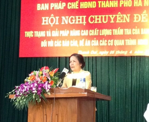 Sáng ngày 05/4, tại huyện Thanh Oai, Ban Pháp chế HĐND TP đã tổ chức Hội nghị chuyên đề về thực trạng và giải pháp nâng cao chất lượng thẩm tra của Ban Pháp chế đối với các báo cáo, đề án của các cơ quan trình HĐND. Dự hội nghị có các đồng chí: Ngô Thị Doãn Thanh, Ủy viên Trung ương Đảng, Chủ tịch HĐND TP; Lê Văn Hoạt, Phó Chủ tịch HĐND TP; lãnh đạo các Ban HĐND TP và đại diện Ban Pháp chế HĐND 29 quận, huyện, thị xã. Tại hội nghị, các đại biểu đã tập trung thảo luận, đóng góp vào các vấn đề: Làm rõ nhiệm vụ, vai trò, trách nhiệm của Ban Pháp chế HĐND trong hoạt động thẩm tra. Đồng thời củng cố những kỹ năng cơ bản, bổ sung thêm những giải pháp chủ yếu nhằm nâng cao chất lượng thẩm tra của Ban Pháp chế HĐND đối với các báo cáo, đề án, tờ trình, dự thảo Nghị quyết trình HĐND; Vai trò giám sát, khảo sát đối với hoạt động thẩm tra và trách nhiệm của Ban Pháp chế HĐND trong việc tổ chức giám sát, khảo sát đối với hoạt động thẩm tra; Vai trò, trách nhiệm của các thành viên trong Ban Pháp chế HĐND trong hoạt động thẩm tra; Việc tuân thủ trình tự thẩm tra, lựa chọn phương thức thẩm tra, xác định nội dung trọng tâm thẩm tra, những vấn đề quan tâm, chú ý trong thẩm tra; Đề xuất ý kiến nhằm nâng cao chất lượng thẩm tra; Đề xuất ý kiến cụ thể với Quốc hội, Chính phủ và các cơ quan Trung ương, Thành phố những vấn đề cần thiết phải làm rõ để góp phần nâng cao chất lượng thẩm tra...