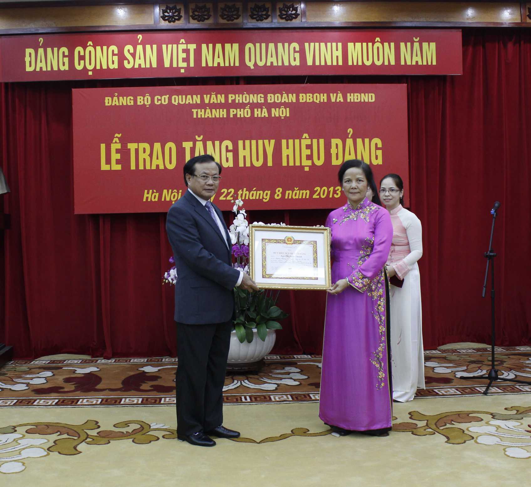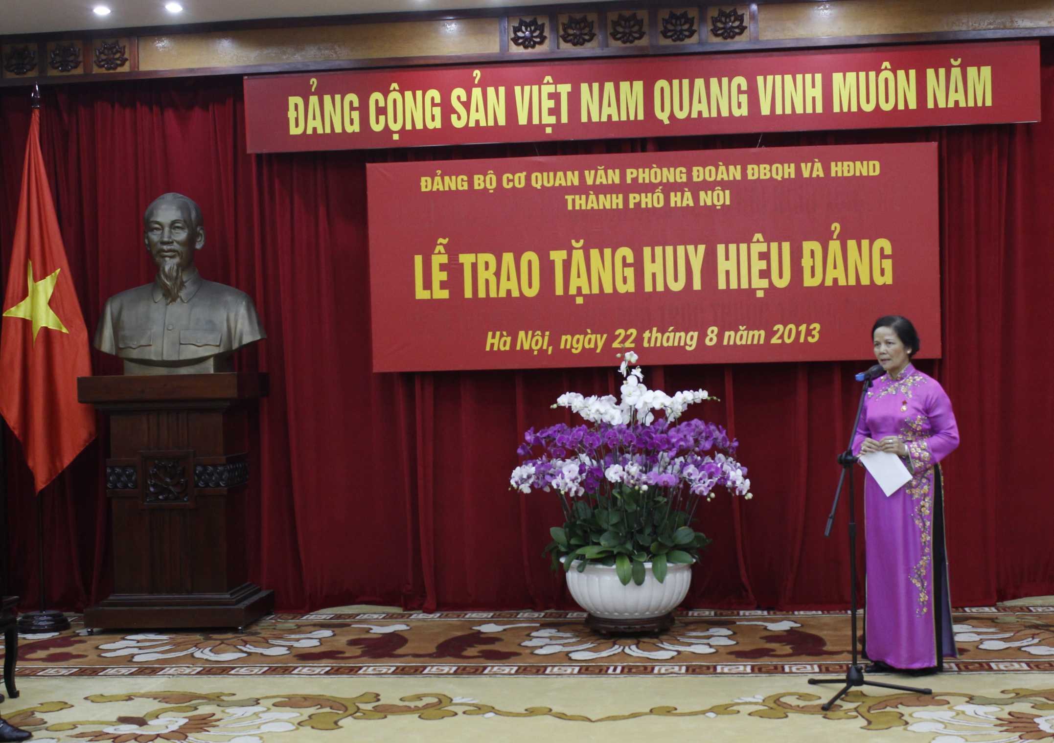 Chiều 22/8, Đảng bộ cơ quan Văn phòng Đoàn ĐBQH và HĐND TP Hà Nội tổ chức trọng thể Lễ trao tặng Huy hiệu 30 tuổi Đảng cho đồng chí Ngô Thị Doãn Thanh, Ủy viên TƯ Đảng, Phó Bí thư Thành ủy, Chủ tịch HĐND TP Hà Nội.