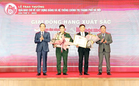 Phó Bí thư Thành ủy, Chủ tịch HĐND thành phố Hà Nội Nguyễn Ngọc Tuấn; Phó Bí thư Thành ủy, Trưởng ban Chỉ đạo hai giải báo chí của Thành ủy Hà Nội Nguyễn Văn Phong trao giải đồng hạng Xuất sắc cho hai cơ quan báo chí là Báo Hànộimới và Báo Quân đội Nhân dân