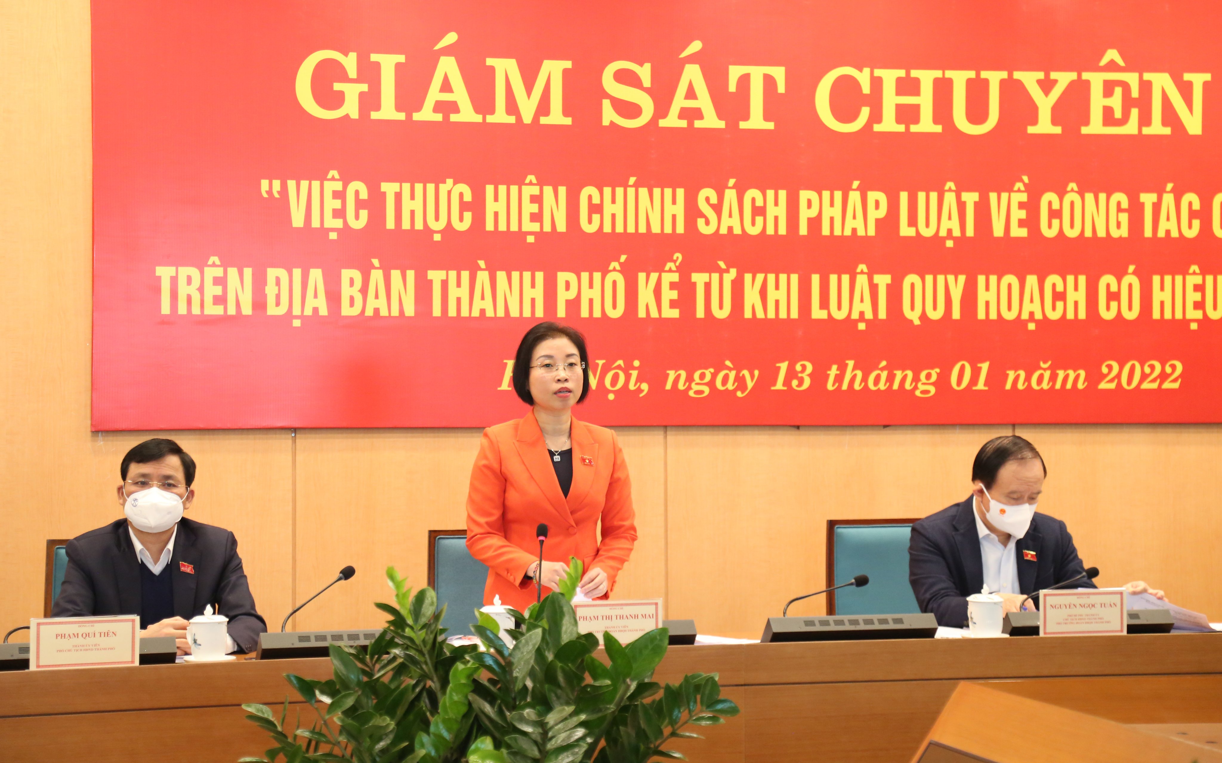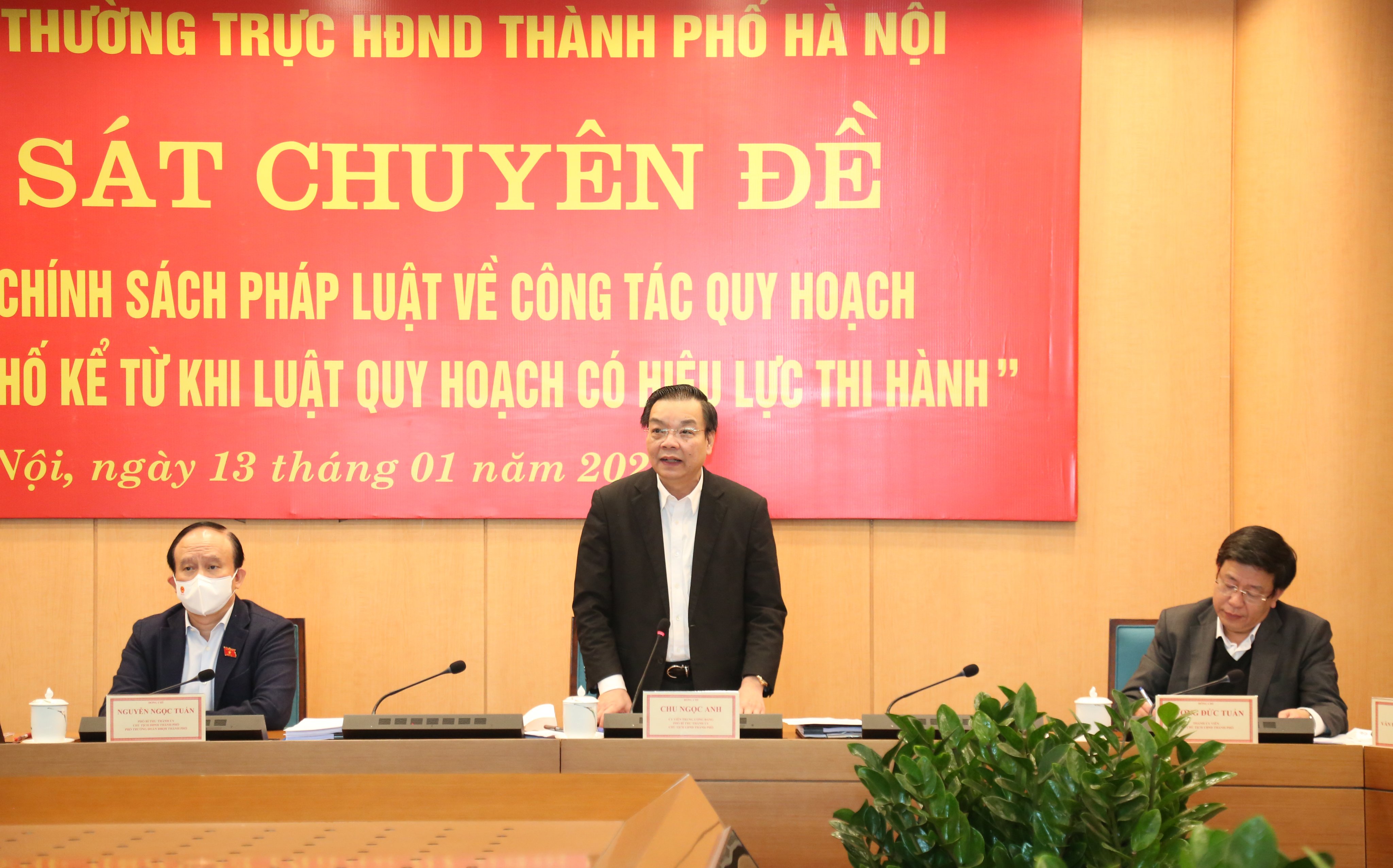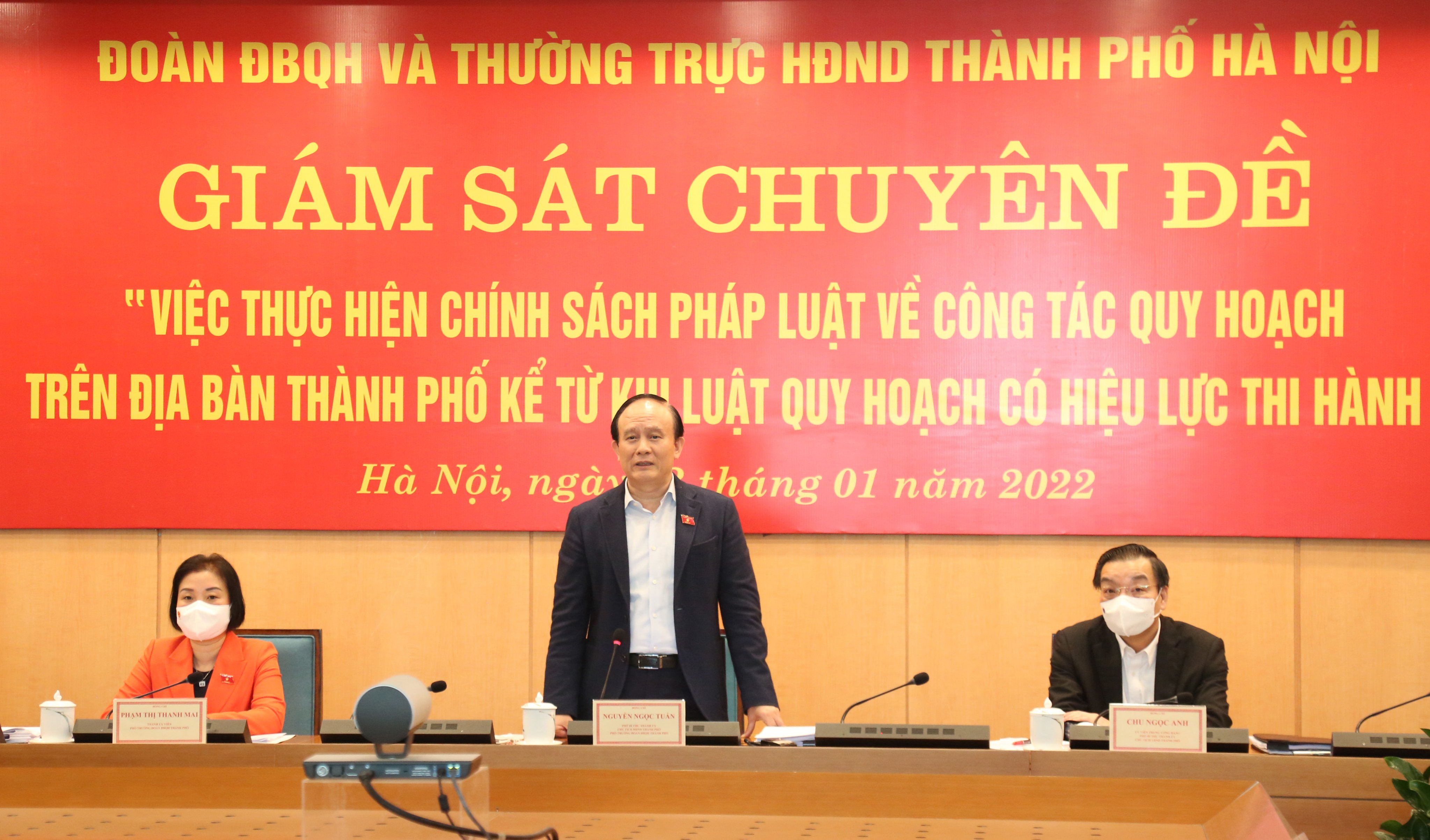 Sáng 13/01/2022, Đoàn giám sát của Đoàn đại biểu Quốc hội thành phố và Thường trực HĐND thành phố Hà Nội do Phó Bí thư Thành ủy, Chủ tịch HĐND thành phố, Phó trưởng Đoàn đại biểu Quốc hội thành phố Nguyễn Ngọc Tuấn làm trưởng đoàn đã giám sát chuyên đề tại UBND thành phố Hà Nội về việc thực hiện chính sách pháp luật về công tác quy hoạch kể từ khi Luật Quy hoạch có hiệu lực thi hành.