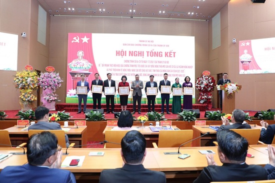 Chiều 12/3/2025, Thành ủy Hà Nội tổ chức Hội nghị tổng kết Chương trình số 04-CTr/TU của Thành ủy khóa XVII về “Đẩy mạnh thực hiện hiệu quả Chương trình mục tiêu quốc gia xây dựng nông thôn mới gắn với cơ cấu lại ngành nông nghiệp và phát triển kinh tế nông thôn, nâng cao đời sống vật chất, tinh thần của nông dân giai đoạn 2021 - 2025”; công bố và trao Quyết định các huyện: Hoài Đức, Đông Anh, Thanh Oai đạt chuẩn nông thôn mới nâng cao.