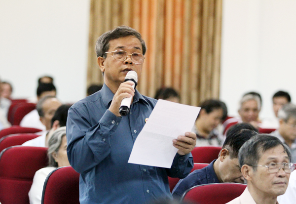 Cử tri thành phố Hà Nội phát biểu tại buổi TXCT sau Kỳ họp thứ 9 Quốc hội