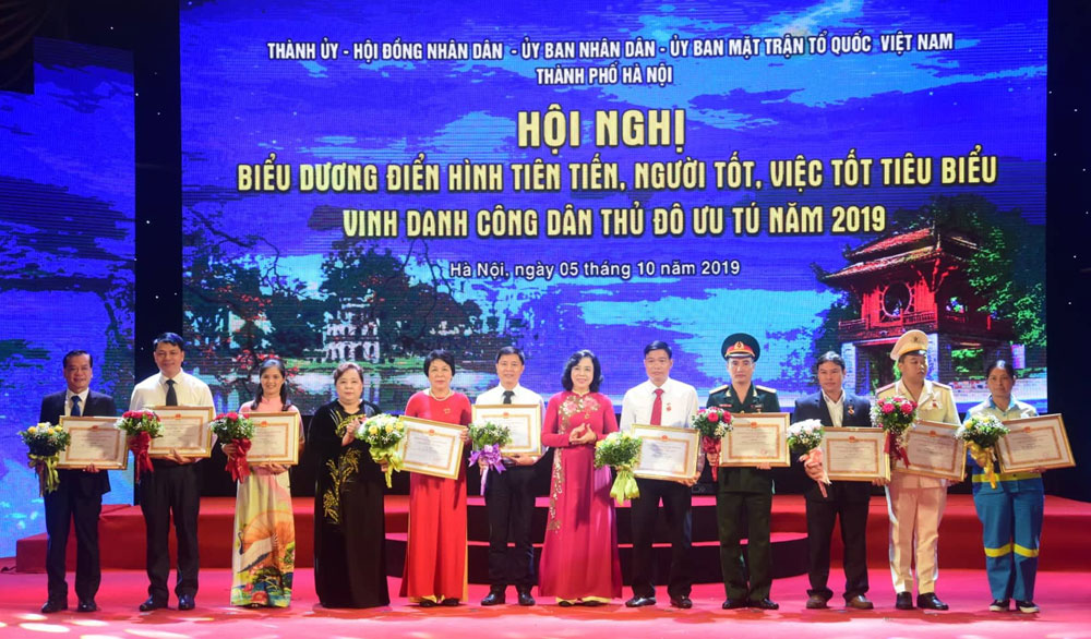 Sáng 5/10, tại Trung tâm nghệ thuật Âu Cơ, Thành ủy-HĐND-UBND-Ủy ban Mặt trận Tổ quốc Việt Nam thành phố Hà Nội tổ chức Hội nghị biểu dương điển hình tiên tiến, Người tốt, việc tốt tiêu biểu; vinh danh Công dân Thủ đô ưu tú năm 2019. Đây là một trong những hoạt động thiết thực nhân kỷ niệm 65 năm Ngày Giải phóng Thủ đô (10/10/1954 - 10/10/2019).