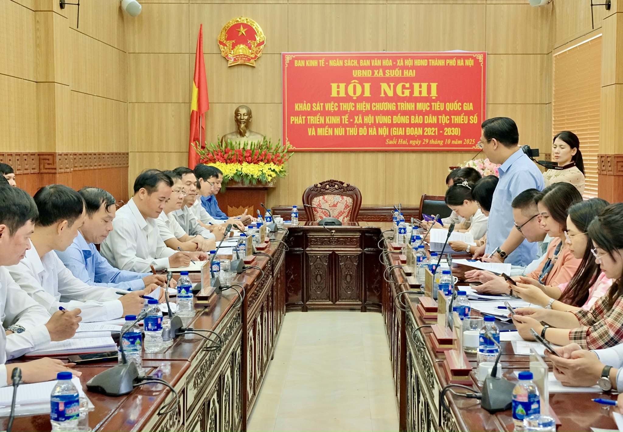 Ngày 29/10/2025, Ban Kinh tế - Ngân sách và Ban Văn hóa - Xã hội HĐND thành phố Hà Nội khảo sát việc thực hiện Chương trình Mục tiêu quốc gia phát triển kinh tế - xã hội vùng đồng bào dân tộc thiếu số và miền núi Thủ đô Hà Nội giai đoạn 2021 - 2030 tại xã Suối Hai.