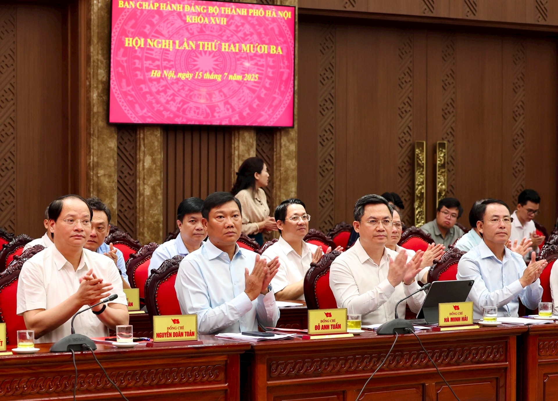 Hội nghị lần thứ 23 Ban Chấp hành Đảng bộ thành phố Hà Nội diễn ra sáng 15-7. Ảnh: Viết Thành
