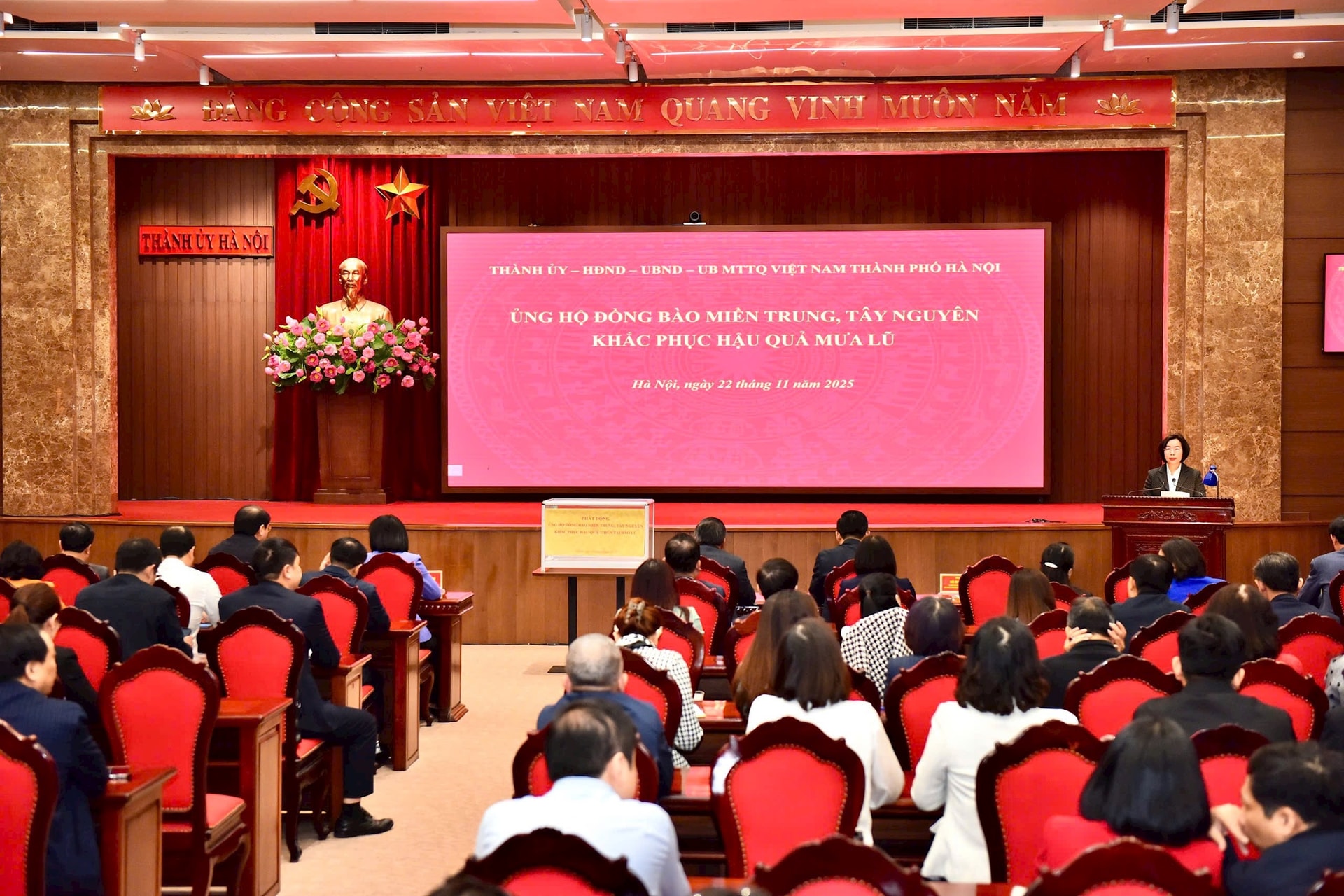 Sáng 22/11/2025, Thành ủy, HĐND, UBND, Ủy ban MTTQ Việt Nam thành phố Hà Nội tổ chức chương trình ủng hộ đồng bào các tỉnh miền Trung, Tây Nguyên khắc phục hậu quả mưa lũ, hưởng ứng Lời kêu gọi của Chủ tịch Ủy ban Trung ương MTTQ Việt Nam.