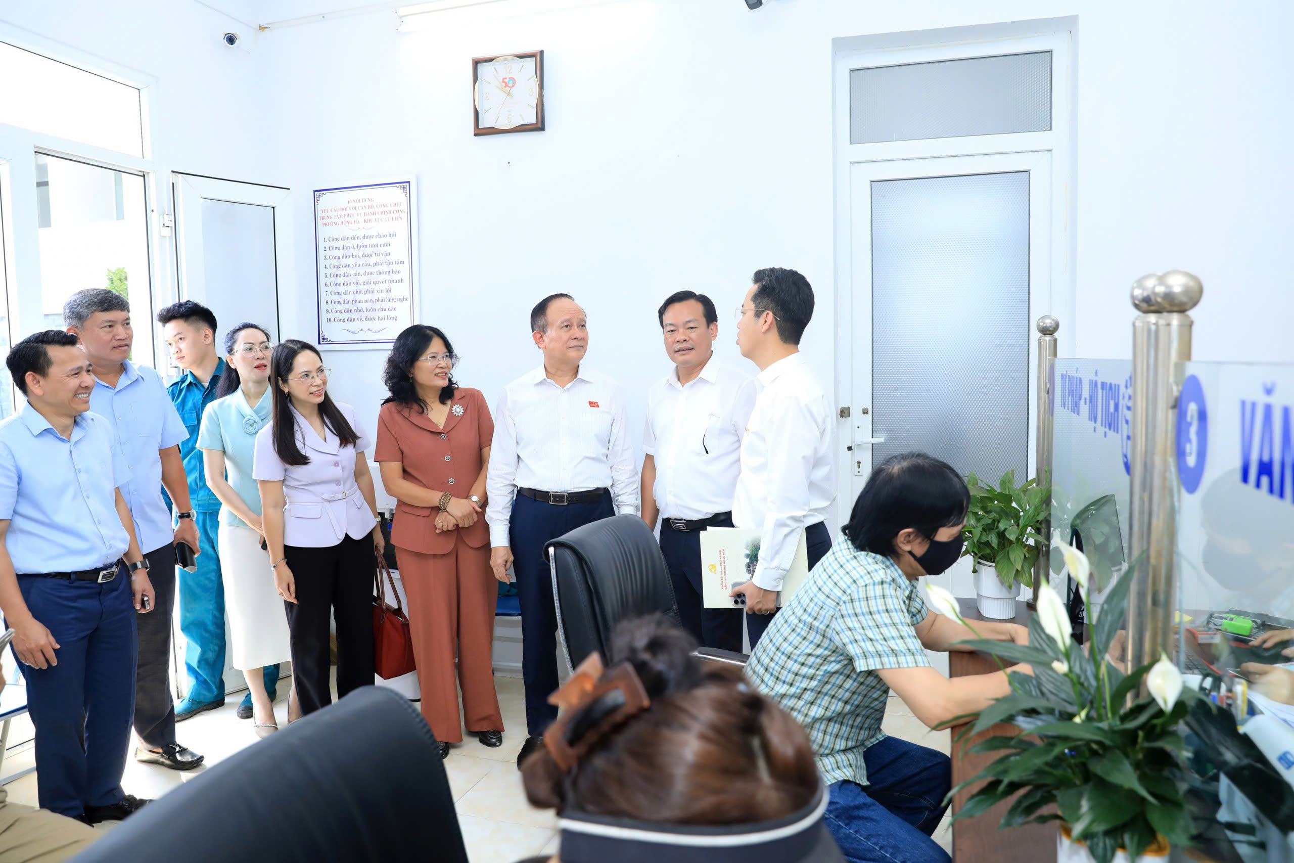 * Trước khi làm việc với Ban Thường vụ Đảng ủy phường Hồng Hà, đồng chí Nguyễn Ngọc Tuấn đã thăm quan, khảo sát Điểm phục vụ hành chính công của phường.