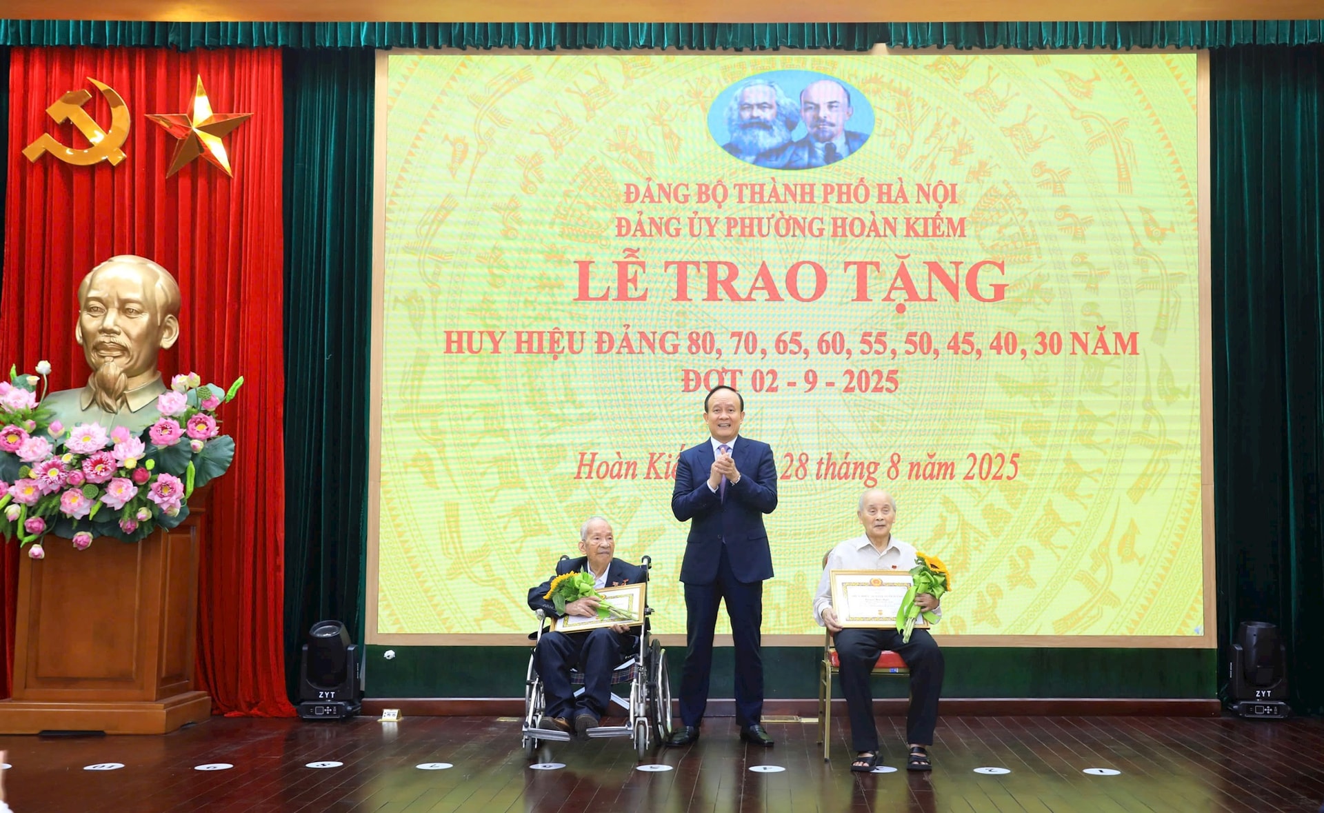 Trân trọng trao Huy hiệu Đảng tới các đồng chí đảng viên lão thành, Phó Bí thư Thành ủy, Chủ tịch HĐND Thành phố Nguyễn Ngọc Tuấn cho biết, đợt này, toàn Thành phố có 10.622 đồng chí được nhận Huy hiệu Đảng. Đảng bộ phường Hoàn Kiếm vinh dự có 138 đồng chí, đặc biệt trong đó có 02 đồng chí được tặng Huy hiệu 80 năm tuổi Đảng, 01 đồng chí được tặng Huy hiệu 70 năm tuổi Đảng.
