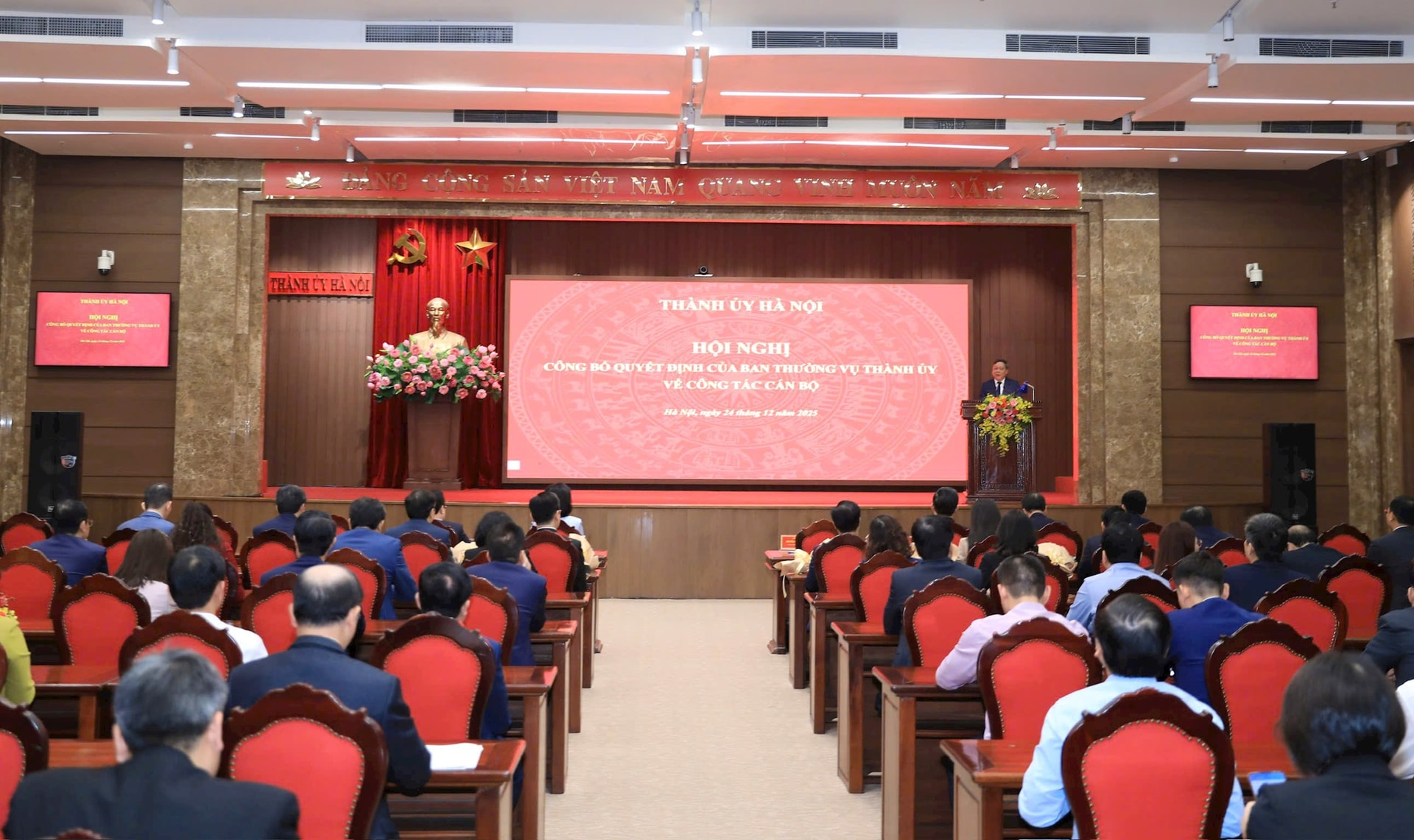 Tại Hội nghị, Phó Trưởng ban Thường trực Ban Tổ chức Thành ủy Hà Nội Nguyễn Minh Long đã công bố 9 quyết định của Ban Thường vụ Thành ủy về công tác cán bộ.