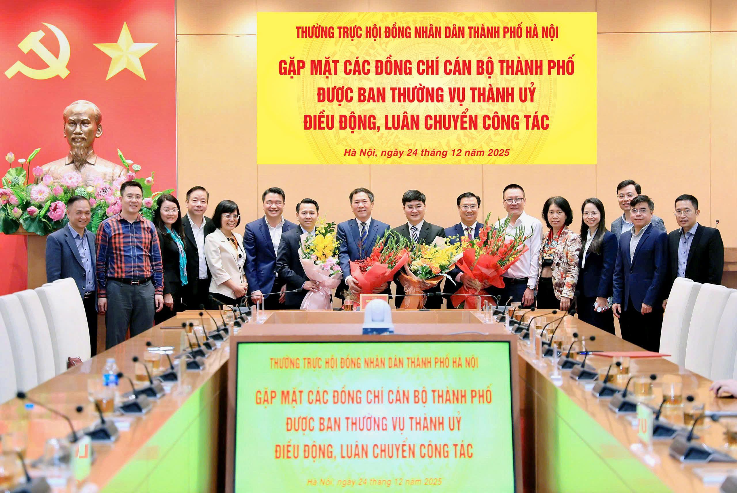 Các đồng chí cán bộ của HĐND Thành phố được điều động, chỉ định nhận nhiệm vụ mới: Theo Quyết định số 390-QĐ/TU ngày 22/12/2025, Ban Thường vụ Thành ủy Hà Nội điều động đồng chí Đỗ Văn Trường (sinh năm 1977) - Chánh Văn phòng Đoàn đại biểu Quốc hội và HĐND TP đến công tác tại cơ quan Ban Nội chính Thành ủy, bổ nhiệm giữ chức vụ Phó Trưởng ban Nội chính Thành ủy. Theo Quyết định số 394-QĐ/TU ngày 22/12/2025, Ban Thường vụ Thành ủy Hà Nội điều động, chỉ định đồng chí Nguyễn Tuấn Thịnh (sinh năm 1971) - đại biểu Quốc hội chuyên trách Đoàn đại biểu Quốc hội TP Hà Nội khóa XV, tham gia Ban Chấp hành, Ban Thường vụ và giữ chức Bí thư Đảng ủy xã Chuyên Mỹ, nhiệm kỳ 2025 - 2030; giới thiệu để kiện toàn giữ chức Chủ tịch HĐND xã Chuyên Mỹ nhiệm kỳ 2021 - 2026. Theo Quyết định số 396-QĐ/TU ngày 22/12/2025, Ban Thường vụ Thành ủy Hà Nội điều động, chỉ định đồng chí Đàm Văn Huân (sinh năm 1968) - Trưởng ban Đô thị HĐND TP nhiệm kỳ 2021 - 2026, tham gia Ban Chấp hành, Ban Thường vụ và giữ chức Bí thư Đảng ủy xã Ứng Hòa, nhiệm kỳ 2025-2030; giới thiệu để kiện toàn chức vụ Chủ tịch HĐND xã Ứng Hòa nhiệm kỳ 2021 - 2026. Theo Quyết định số 400-QĐ/TU, ngày 22/12/2025, Ban Thường vụ Thành ủy Hà Nội điều động, chỉ định đồng chí Nguyễn Thanh Bình (sinh năm 1976) - Trưởng ban Văn hóa - Xã hội, HĐND TP, nhiệm kỳ 2021 - 2026, tham gia Ban Chấp hành, Ban Thường vụ và giữ chức Bí thư Đảng ủy xã Hoài Đức, nhiệm kỳ 2025 - 2030; giới thiệu để kiện toàn giữ chức Chủ tịch HĐND xã Hoài Đức nhiệm kỳ 2021 - 2026. Theo Quyết định số 397-QĐ/TU ngày 22/12/2025, Ban Thường vụ Thành ủy Hà Nội phân công, giới thiệu đồng chí Bạch Liên Hương (sinh năm 1975) - Thành ủy viên, Giám đốc Sở Văn hóa và Thể thao thành phố, ứng cử để bầu giữ chức vụ Trưởng ban Văn hóa - Xã hội, HĐND TP nhiệm kỳ 2021 - 2026 và nhiệm kỳ 2026 - 2031. |