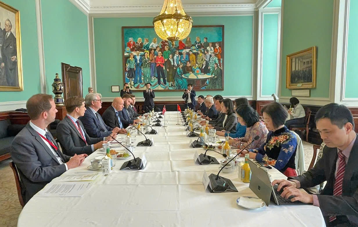 Lãnh đạo Quốc hội Đan Mạch bày tỏ vui mừng được đón Đoàn đại biểu Quốc hội Việt Nam sang thăm làm việc, đồng thời khẳng định Việt Nam là một trong những đối tác quan trọng hàng đầu của Đan Mạch tại Đông Nam Á. Chủ tịch Quốc hội và Phó Chủ tịch Quốc hội Đan Mạch đánh giá cao thành tựu kinh tế - xã hội và nỗ lực chuyển đổi xanh của Việt Nam; bày tỏ sẵn sàng hỗ trợ Việt Nam trong quá trình đạt các Mục tiêu phát triển bền vững (SDGs).