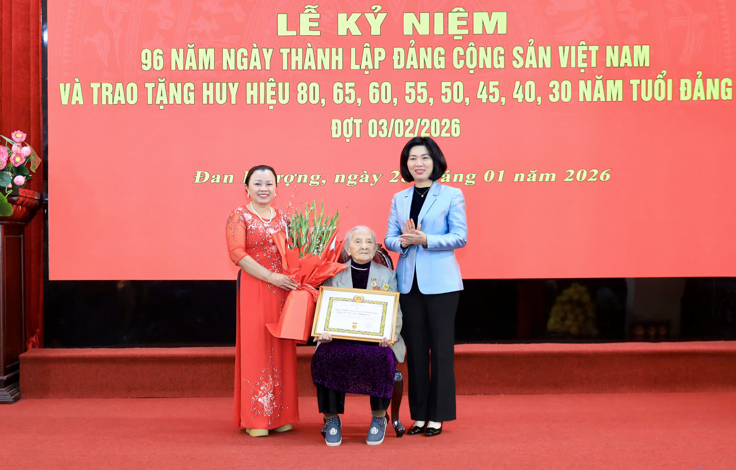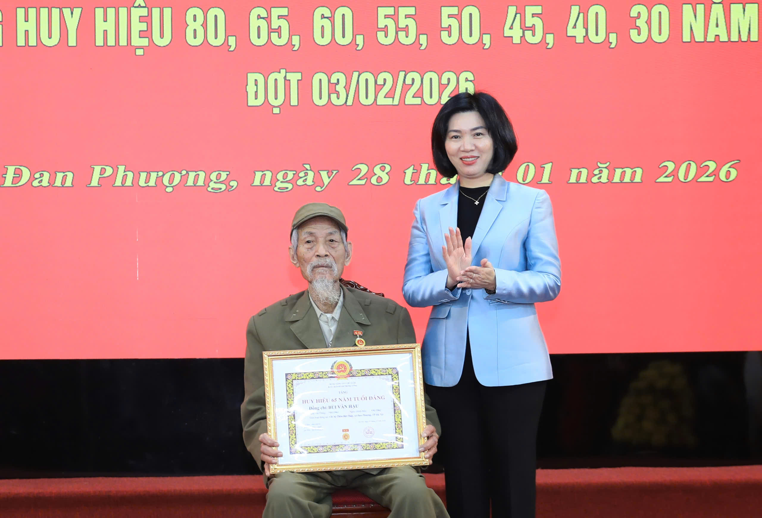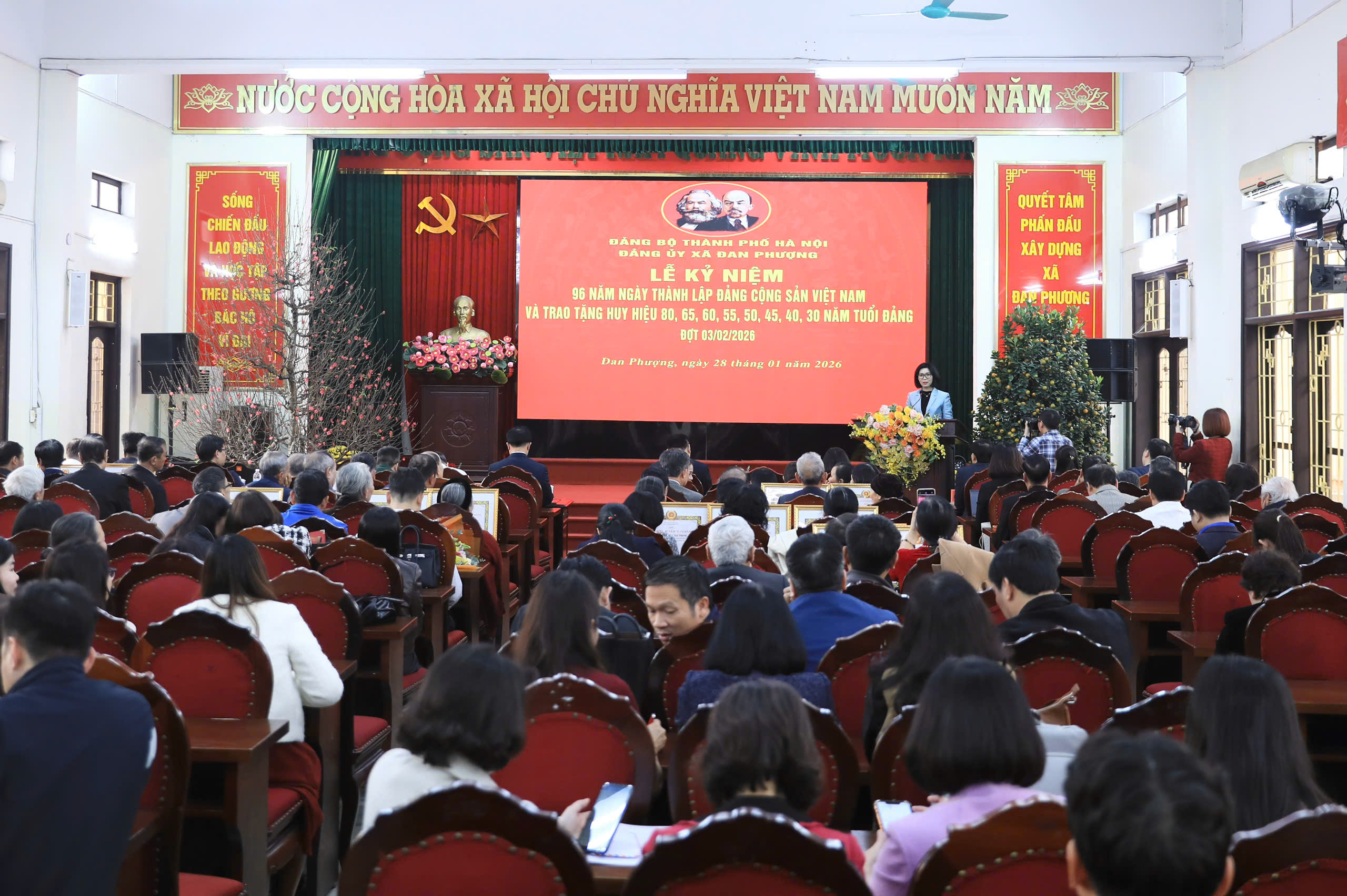 Chiều ngày 28/01/2026, Ban Thường vụ Đảng ủy xã Đan Phượng tổ chức Lễ kỷ niệm 96 năm Ngày thành lập Đảng Cộng sản Việt Nam (3/2/1930 - 3/2/2026) và Lễ trao tặng Huy hiệu 80, 65, 60, 55, 50, 45, 40, 30 năm tuổi Đảng. Đồng chí Phùng Thị Hồng Hà, Phó Bí thư Thành ủy, Chủ tịch HĐND Thành phố dự và trao Huy hiệu Đảng tặng các đảng viên.