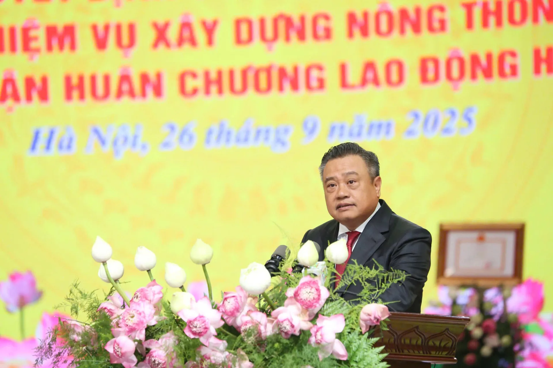 Phát biểu tại lễ công bố, Phó Chủ tịch Quốc hội Lê Minh Hoan đánh giá, Đảng bộ, chính quyền và Nhân dân Thủ đô đã hoàn thành nhiệm vụ xây dựng nông thôn mới năm 2024 và vinh dự đón nhận Huân chương Lao động hạng Nhất. Đây không chỉ là niềm tự hào của riêng Hà Nội, mà còn là niềm vui chung của cả nước.