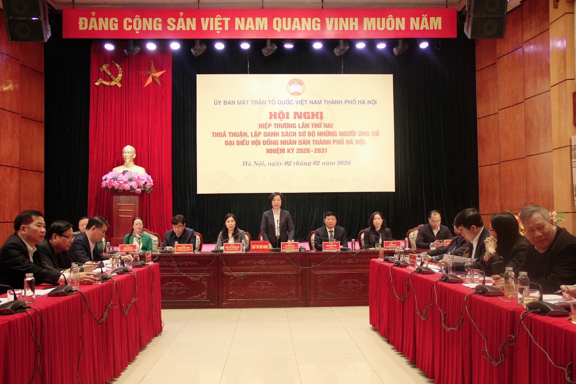 Sáng 02/02/2026, Ủy ban MTTQ Việt Nam thành phố Hà Nội tổ chức hội nghị hiệp thương lần thứ hai thỏa thuận, lập danh sách sơ bộ những người ứng cử đại biểu Quốc hội khóa XVI và đại biểu HĐND thành phố Hà Nội, nhiệm kỳ 2026-2031.