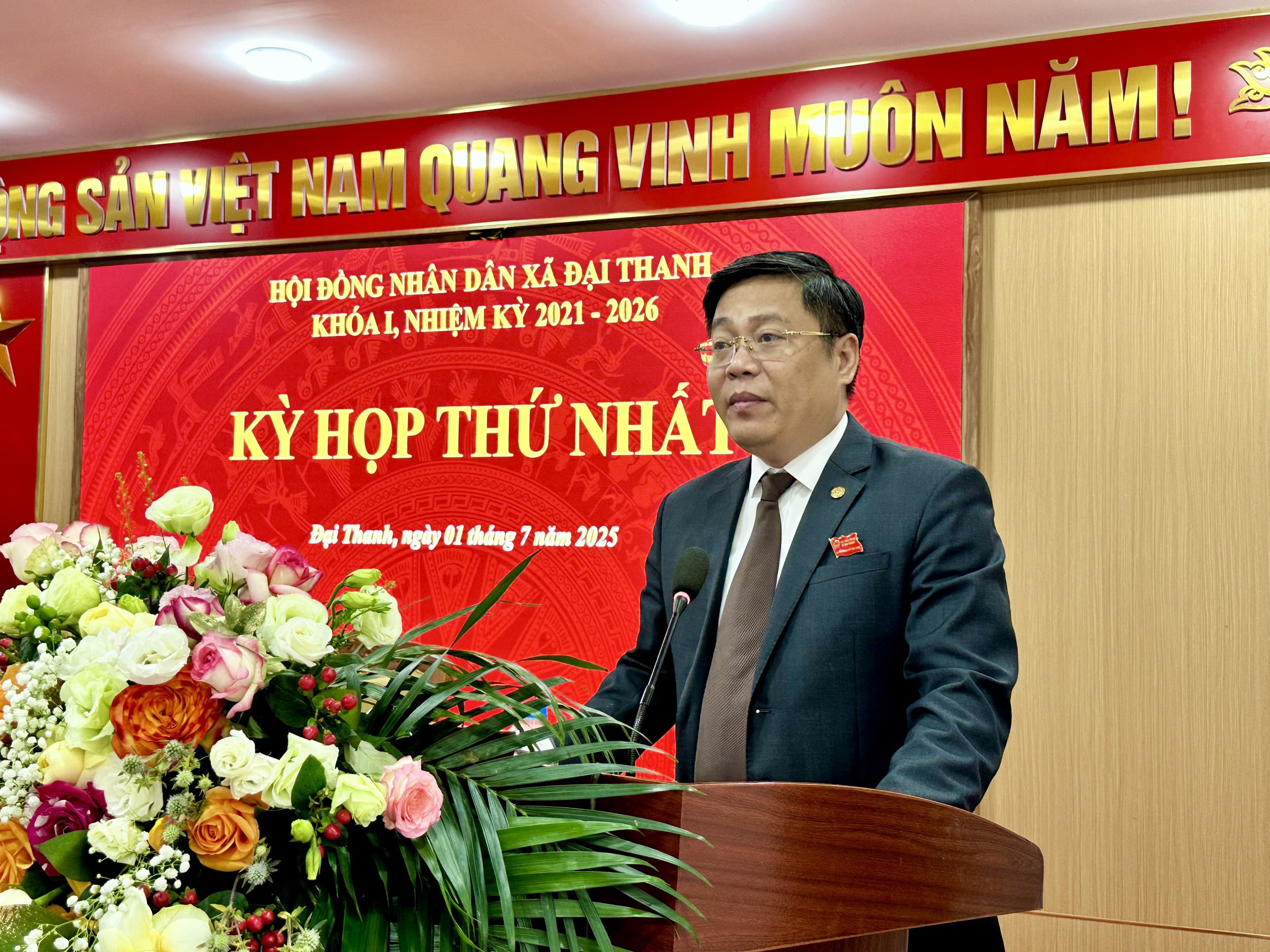 Phát biểu khai mạc kỳ họp, đồng chí Đặng Đức Quỳnh, Bí thư Đảng ủy, Chủ tịch HĐND xã Đại Thanh cho biết: Từ 01/7/2025, chính quyền địa phương 2 cấp chính thức đi vào hoạt động, kỳ họp thứ nhất, HĐND xã Đại Thanh được tổ chức ngay ngày đầu tiên vận hành chính quyền 02 cấp, đánh dấu một bước ngoặt trong công tác cải cách hành chính của Đảng và Nhà nước, là chủ trương đúng đắn của Đảng và Nhà nước, nhằm bảo đảm tính tổng thể, đồng bộ, thống nhất trong hệ thống chính trị; sắp xếp tổ chức bộ máy tinh - gọn - mạnh - hiệu năng - hiệu lực - hiệu quả, mục tiêu là gần dân, sát dân hơn, phục vụ nhân dân và doanh nghiệp được tốt hơn; đáp ứng yêu cầu trong kỷ nguyên phát triển mới của đất nước.