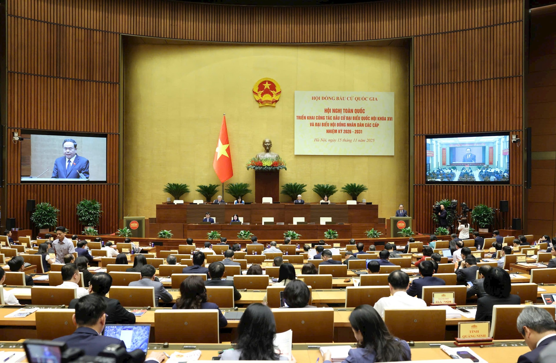 Sáng 15/11/2025, tại Nhà Quốc hội, Hội đồng Bầu cử quốc gia tổ chức Hội nghị toàn quốc quán triệt Chỉ thị của Bộ Chính trị, triển khai công tác bầu cử đại biểu Quốc hội khóa XVI và đại biểu HĐND các cấp nhiệm kỳ 2026-2031. Hội nghị được tổ chức theo hình thức trực tiếp kết hợp trực tuyến đến các điểm cầu cấp tỉnh, cấp xã của 34 tỉnh, thành phố trong cả nước.