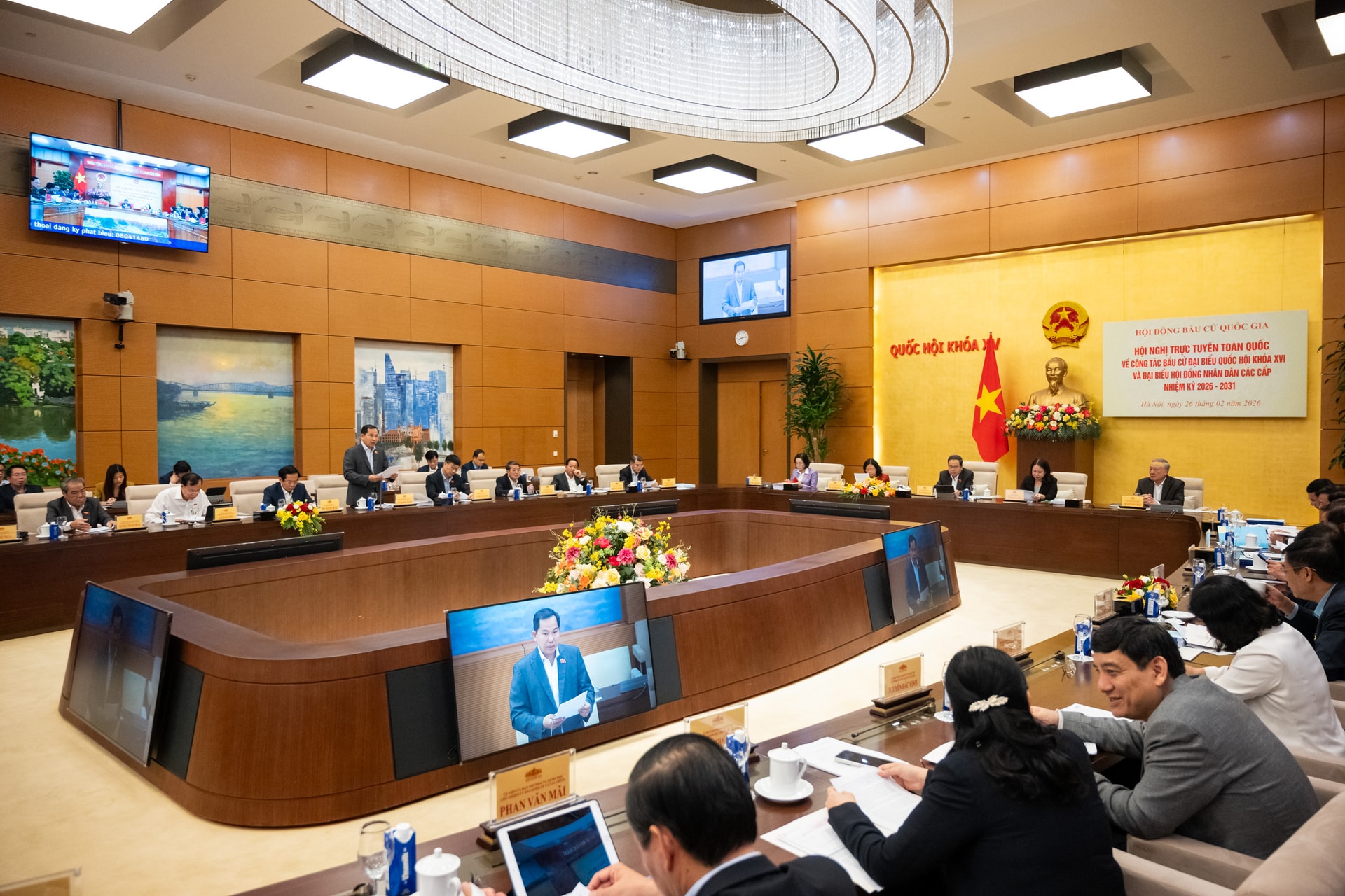 Sáng 26/02/2026, tại Nhà Quốc hội, Ủy viên Bộ Chính trị, Chủ tịch Quốc hội, Chủ tịch Hội đồng Bầu cử quốc gia Trần Thanh Mẫn chủ trì Hội nghị trực tuyến toàn quốc triển khai công tác bầu cử đại biểu Quốc hội khóa XVI và đại biểu HĐND các cấp nhiệm kỳ 2026-2031.