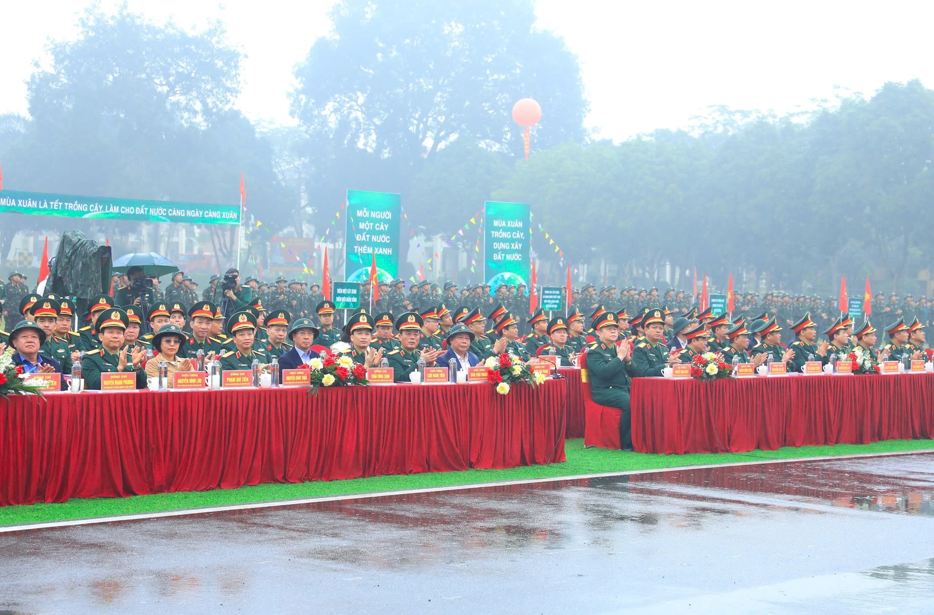 Dự lễ phát động Tết trồng cây tại điểm cầu Trung đoàn 692, xã Đoài Phương có các đồng chí: Đại tướng Nguyễn Trọng Nghĩa, Ủy viên Bộ Chính trị, Bí thư Trung ương Đảng, Ủy viên Thường vụ Quân ủy Trung ương, Chủ nhiệm Tổng cục chính trị Quân đội nhân dân Việt Nam; Thượng tướng Nguyễn Trường Thắng, Uỷ viên Ban Chấp hành Trung ương Đảng, Uỷ viên Quân uỷ Trung ương, Thứ trưởng Bộ Quốc phòng...